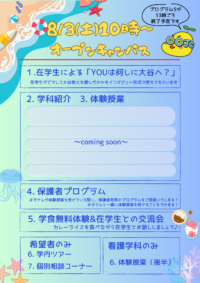 オープンキャンパス開催のお知らせ(7月28日・8月3日)