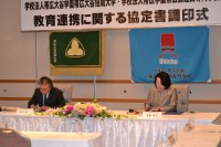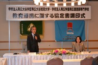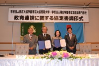 2017年9月7日(木)、北海道ホテルにおきまして学校法人帯広学園帯広調理師専門学校と本学との教育連携に関する協定の調印式が行われました。 この協定は、相互の教育活動の交流を通して連携・協力し、教育内容への理解を深めることにより、双方の教育目標達成を促進するとともに、十勝管内の将来を担う青少年の人材養成、地域社会への貢献、短期大学及び専門学校における教育の充実と学生及び生徒の資質の向上を図ることを目的として、学校法人帯広学園帯広調理師専門学校と本学が締結した教育連携です。