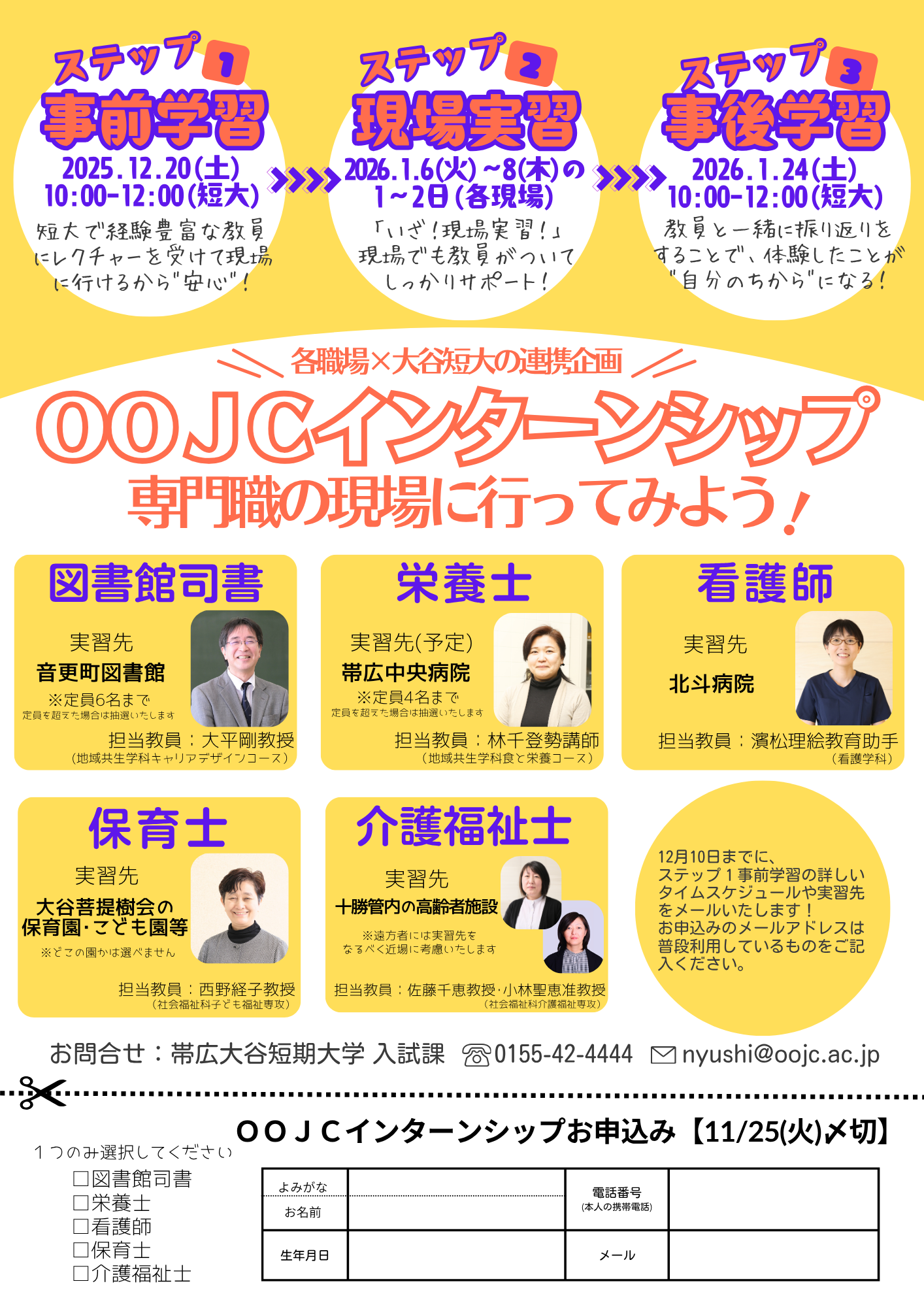 OOJCインターンシップを実施します(十勝管内の高校生限定)