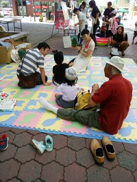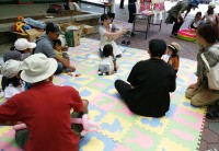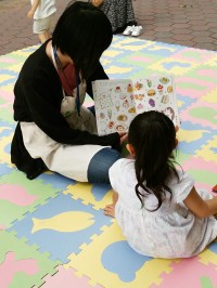 月2回音更町図書館にてお話し会を行っていますが、年に1度ホコテン内で屋外の読み聞かせに挑戦しています。室内と比べると声が聞こえにくい部分もありますが、来場してくれた子どもたちは皆真剣な顔でお話を聞いていて、この絵本もこの絵本もと次々リクエストがかかり、学生たちが立て続けに読み聞かせをしている姿が印象的でした。