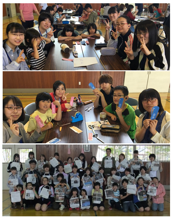 北海道帯広聾学校で新聞紙エコバッグとオリジナルしおりを作成しました