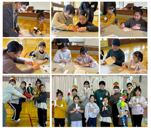11月29日(金)、子ども福祉科の学生と北海道帯広聾学校へおじゃまして、小学部の子どもたちと一緒に第17回ブックリユースカフェで配布する「英字新聞しおり」を作ってきました。その後はお楽しみのゲームの時間!今回は「だるまさんがころんだ」アレンジバージョンを楽しみました。ラストは恒例の児童書プレゼント。帯広聾学校の皆さま、ありがとうございました!