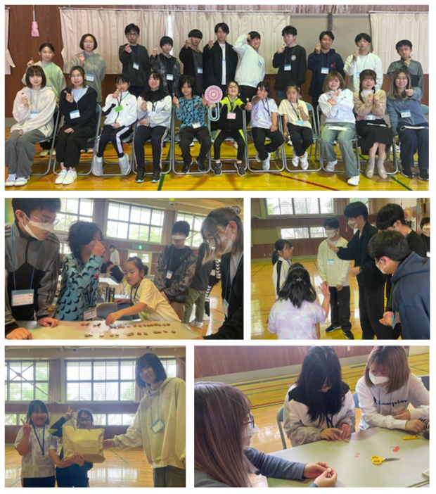 5月27日(月)、地域共生学科キャリアデザインコースの学生と北海道帯広聾学校を訪問し、小学部の子どもたちと交流しました。木製ボタンを使った「クリップしおり」を作った後は、手話でお互いの誕生日を伝えて順番を決める「バースデーライン」というゲームを楽しみました。クリップしおりは6月8日(土)開催の第16回ブックリユースカフェで配布します。最後は恒例の児童書プレゼント!帯広聾学校の皆さま、楽しい時間をありがとうございました。