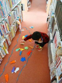 今年の催し物は「おさかなつりゲーム」「ボーリングゲーム」「お話間違いさがし」など図書館全体を使って多数用意し、来館者はそれぞれのコーナーで楽しんでいる様子でした。多くの方のご来場、誠にありがとうございました。