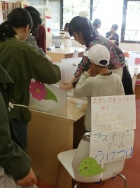 今年は、ヒントを頼りに本を探し出すミステリーゲーム、チラシを利用して伸びる棒を制作する工作教室、他にも手品、絵本の読み聞かせといった催しを用意し、図書館内どのコーナーでも楽しんでいただけるよう工夫しました。