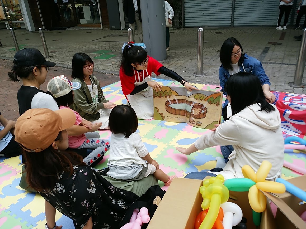 参加した学生は、「野外で読み聞かせをする機会がなかなかないので、いい経験になりました。」(地域教養学科2年 嶋田くん)「予想より人が少なかったが、1組あたりの親子に質の高いサービスを提供することができてよかった。」(地域教養学科2年 岡本くん)と、普段味わえない体験ができ、心に残る一日となったようです。