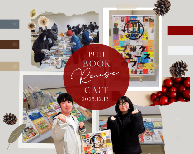 2025年12月13日(土)、「第19回ブックリユースカフェ」を開催しました。今回もたくさんの方にご来場いただき、本当にありがとうございました。今回は子ども向けの本が多かったこともあり、ご家族でお越しくださる方がたくさんいらっしゃいました。図書館ボランティアサークルあすぱらのメンバーは来場者の多さにやや押されつつも最後まで頑張ってくれました。