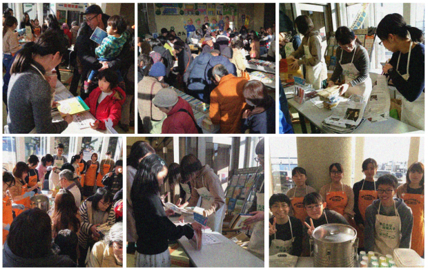 北海道帯広聾学校小学部の子どもたちと製作した「新聞紙エコバッグ」「オリジナルしおり」、本学生活科学科栄養士課程学生考案の「さつまいもとりんごのデザートポタージュ」も、地域の皆さまに大変ご好評をいただきました。