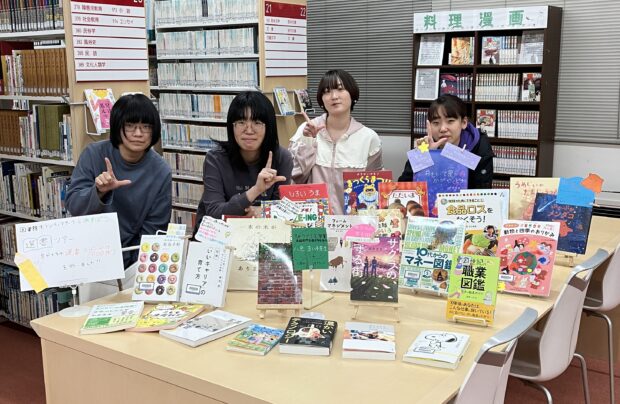 学生たちの作ったオススメポイントが書かれたPOPと合わせてご覧ください。もちろん貸出も可能です!