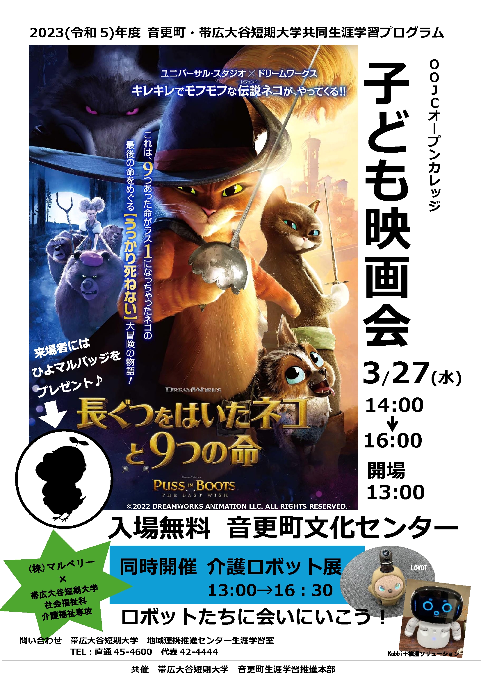 OOJCオープンカレッジ 子ども映画会『長ぐつをはいたネコと9つの命』
