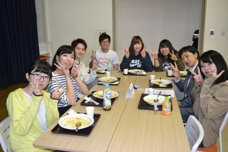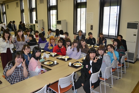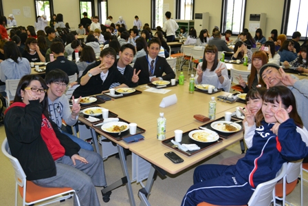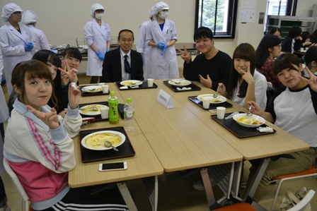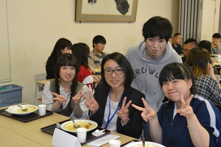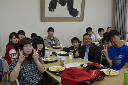 進路指導をご担当される高等学校の先生をお招きし、6月1日(金)に進学懇談会を開催しました。第2部昼食会は生活科学科栄養士課程2年生が来学頂いた先生のためにカレーライスをを用意しました。ご出席いただいた先生は、高校生の頃より一段と成長した出身学生と、高校在学当時の昔話や現況報告に花を咲かせていました。
