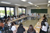 また、特待生からの要望と題し、学生から短大に対する意見として、田中学長・岡庭副学長と学生の間で活発な意見交換がなされ、終始和やかな雰囲気の中で、有意義な交流の場となりました。