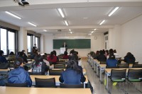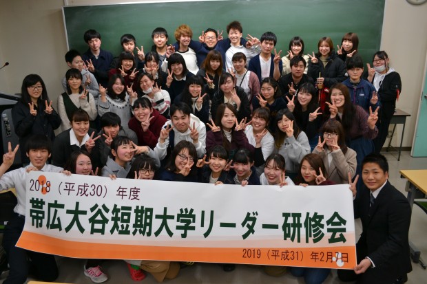 2019(平成31)年2月7日(木)、リーダー研修会を実施し、短大を代表する学生会執行委員と、各サークル代表者が次年度への引継ぎを行いました。田中学長の挨拶の後、佐藤千恵学生支援委員長からリーダー研修の意義について説明があり、学生会活動及びサークル活動は、学生生活の充実・発展に欠かせないものであることから、年間を通して行われる学内行事や地域活動、ボランティアへ積極的に参加することの意義について再確認しました。