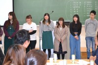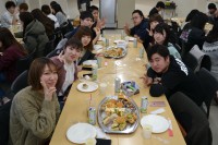 講義室を移動し行われた交流会では、新・旧学生会執行委員の挨拶、各サークルより活動内容等の紹介があり、「サンドイッチ」を食べながら交流がなされ、スライドショーを観ながら1年間の学内行事を振り返り、親睦を深めました。