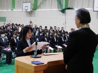 新入学生は緊張半分、期待半分の面持ちで式に臨んでいました。