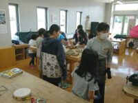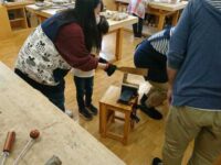 本学学生6名と教員2名、参加者は小学生8名にて、地元で伐採された木材を使用し、ウッドブロック