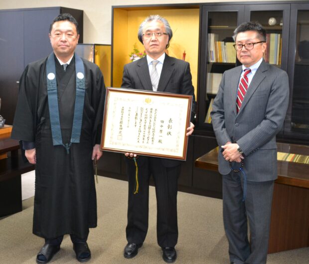 この度の功績に、本学理事長 桂井智善より「表彰状」が授与されました。
