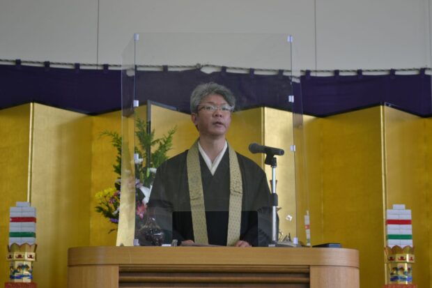 「報恩講」とは、浄土真宗の開祖・親鸞聖人のご命日を中心にして行われる行事で、 親鸞聖人の遺徳をしのび、生きていくなかで受けてきたたくさんの「恩」に「報いる」ことに思いを 馳せることとあり、今年は真宗大谷派 大昭寺 住職で、本学園理事の中野誠二氏に法話をいただきました。