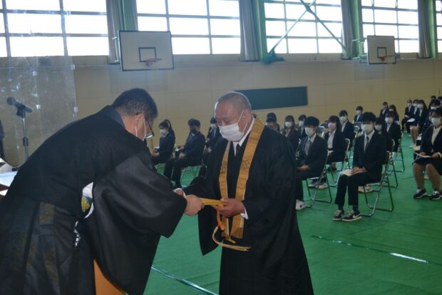 記念式典の開催は、昨今のコロナ禍の状況を鑑み慎重に検討を重ね、学生および教職員のみの最少人数で注意を払うこととして挙行いたしました。