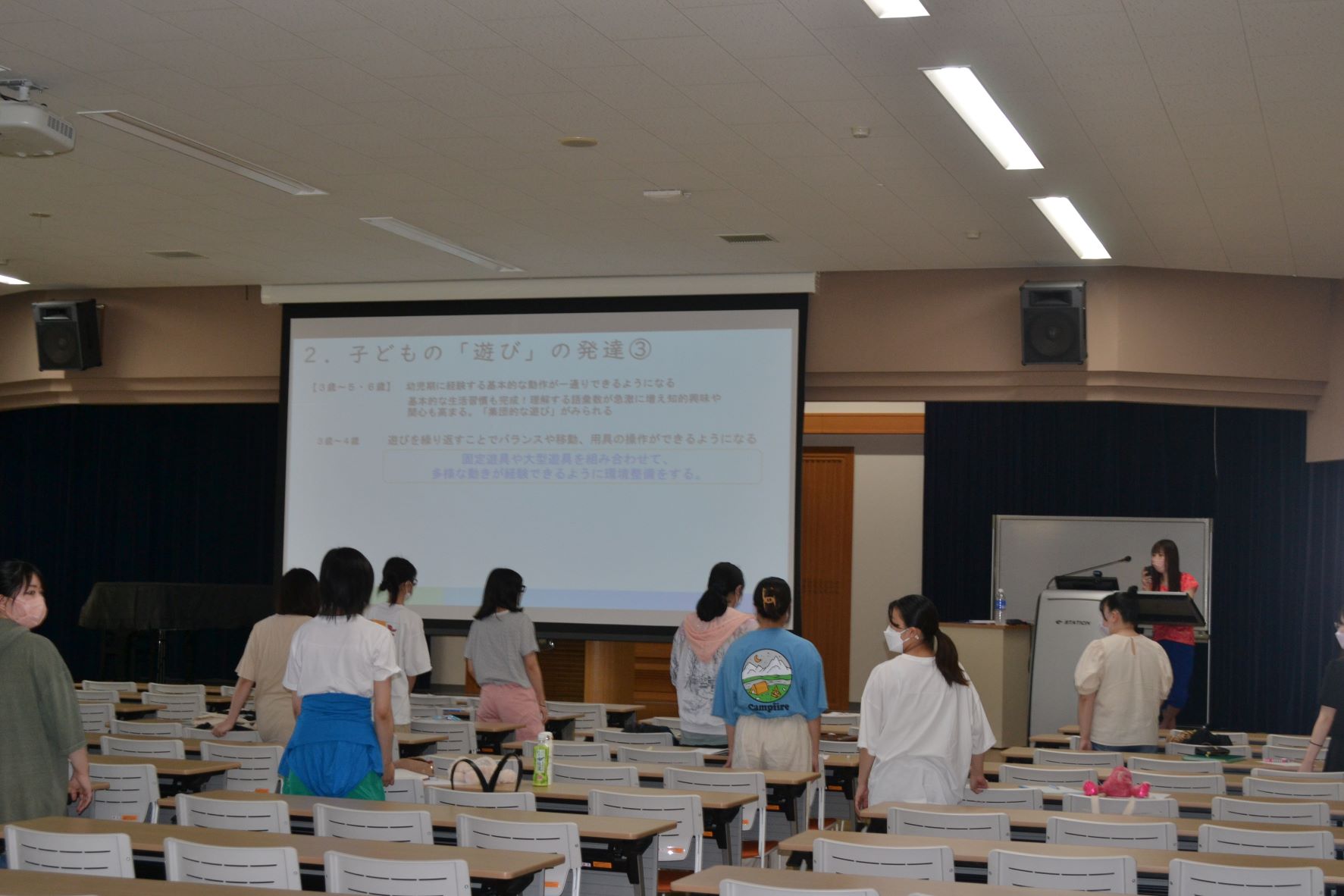 6月27日(月)、社会福祉科 子ども福祉専攻「保育内容(健康)」(2年生)の講義です。