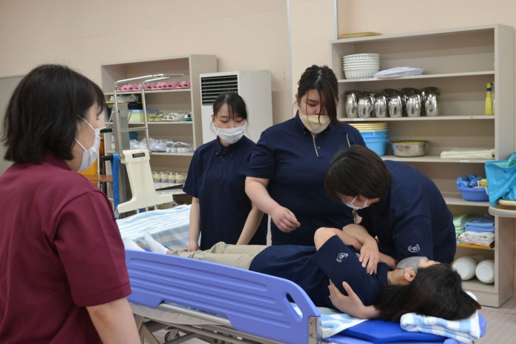 この日は、7月末からの実習へ向けて利用者の方の心身状況に応じた移動や移乗の方法について再確認を行いました。