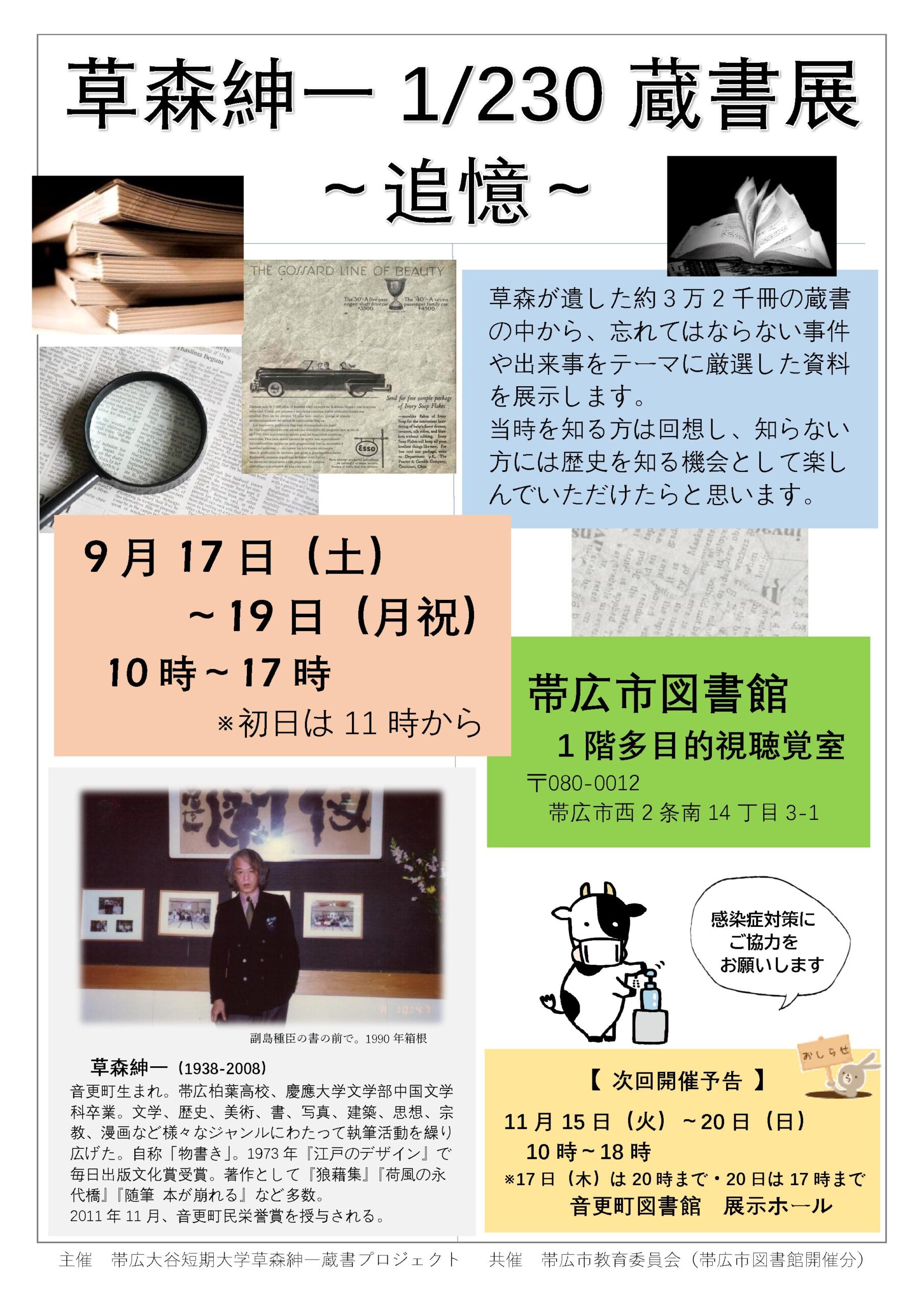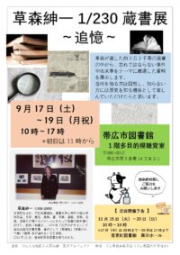 【問い合わせ先】 帯広大谷短期大学 草森紳一研究推進室 加藤 (直通)0155-45-4600