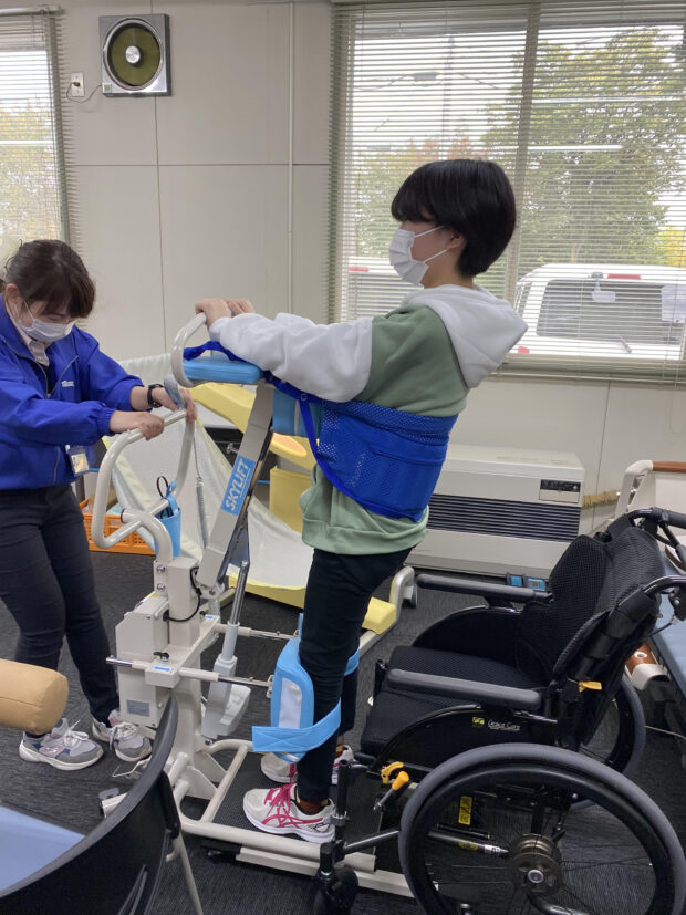 10月7日(金)、および14日(金)、社会福祉科 介護福祉専攻1年生の「家庭生活支援技術Ⅰ」の講義を株式会社マルベリーさわやかセンター帯広にて行いました。 生活支援における福祉用具の重要性や福祉用具の種類、適切な福祉用具を選ぶための視点について講義や体験を通し学習しました。最新の介護機器を実際に体験させていただくことで、福祉用具の意義についての理解がより深まりました。