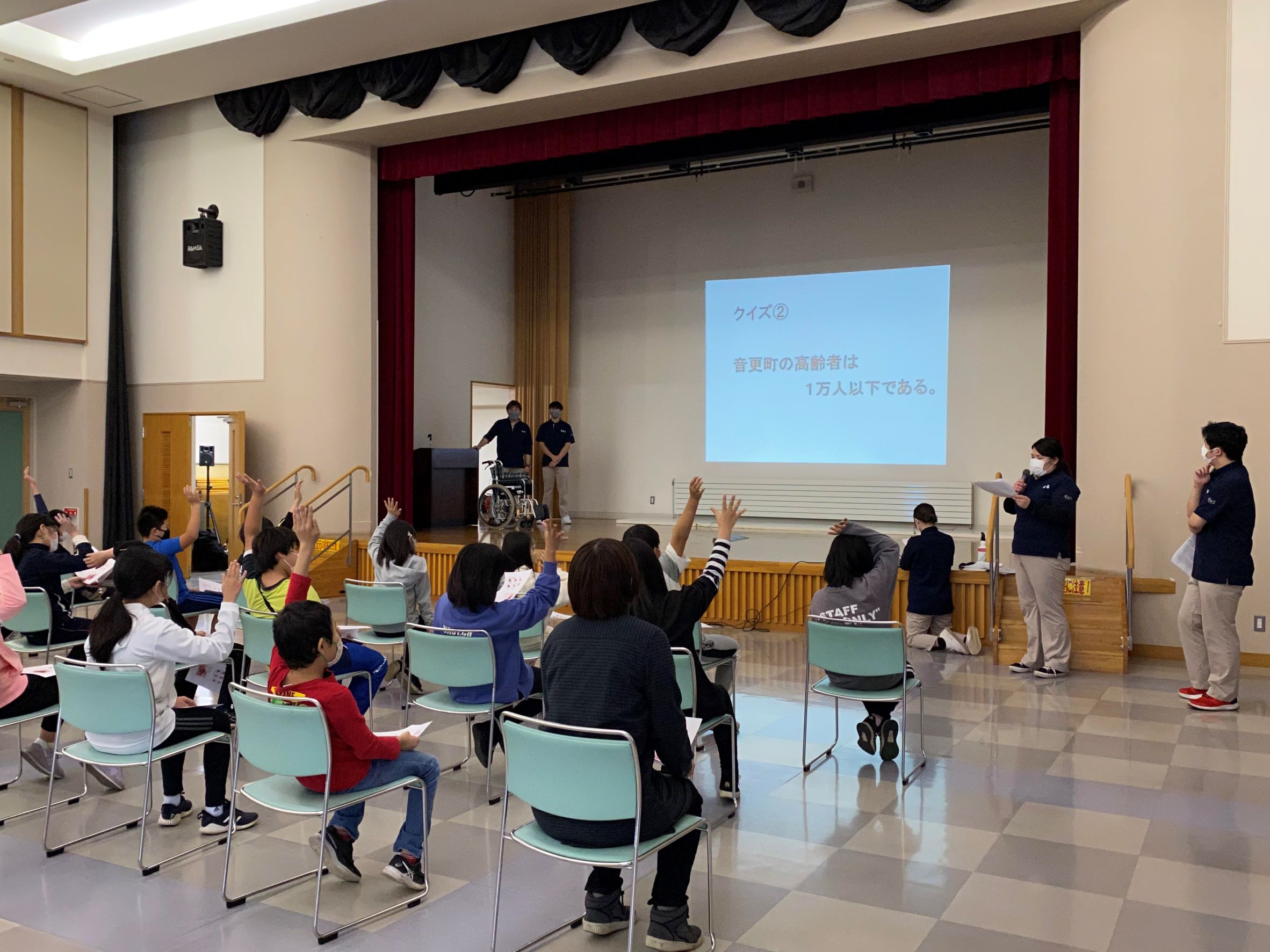 下音更小学校「福祉の学習」のサポートを行いました。音更町社会福祉協議会との連携事業として「車いす体験学習」について、小学生が安全に体験できるよう、実演やグループでの演習のサポートを行いました。 体験を通し、介護指導技術を高めるとともに、地域における介護福祉士の役割を体験的に学ぶ機会となりました。