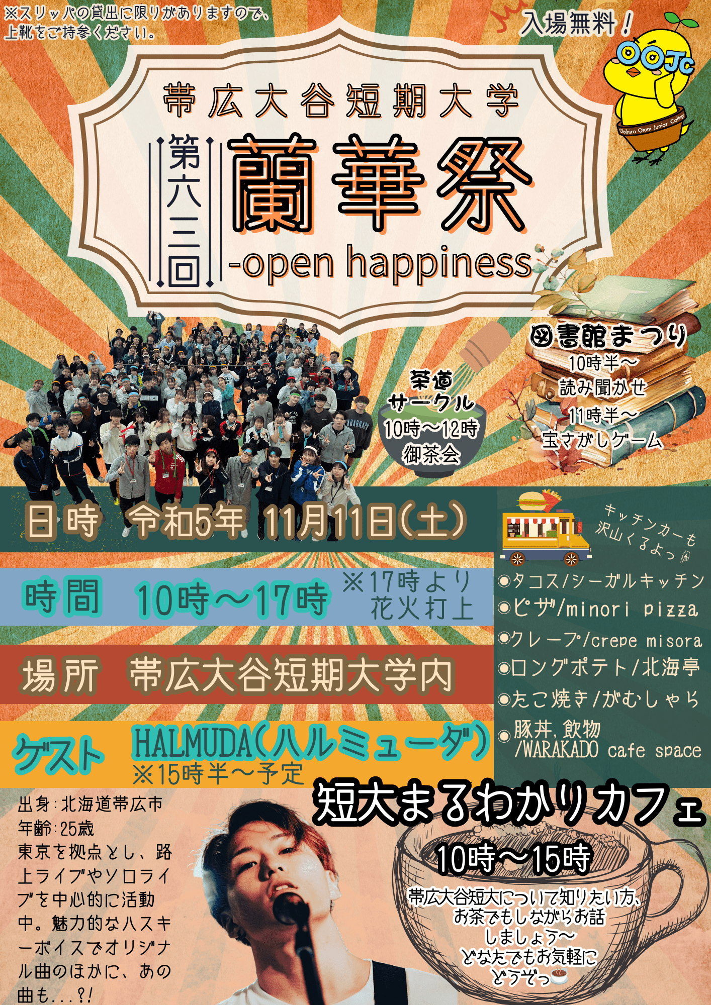 第63回の蘭華祭(大学祭)が11月11日(土)10時~17時の日程で行われます。