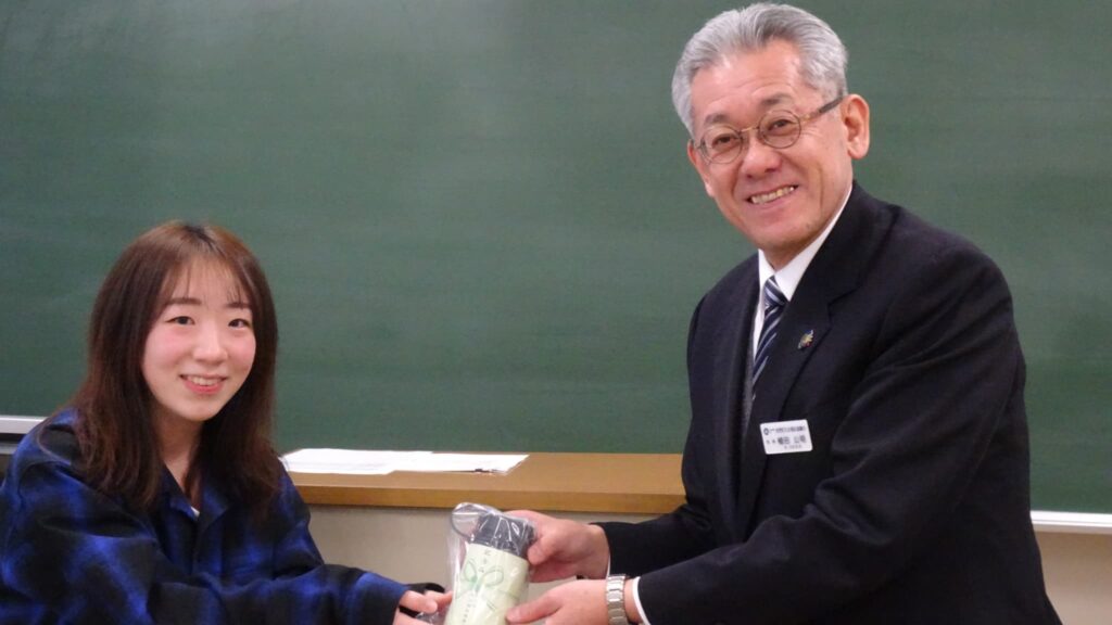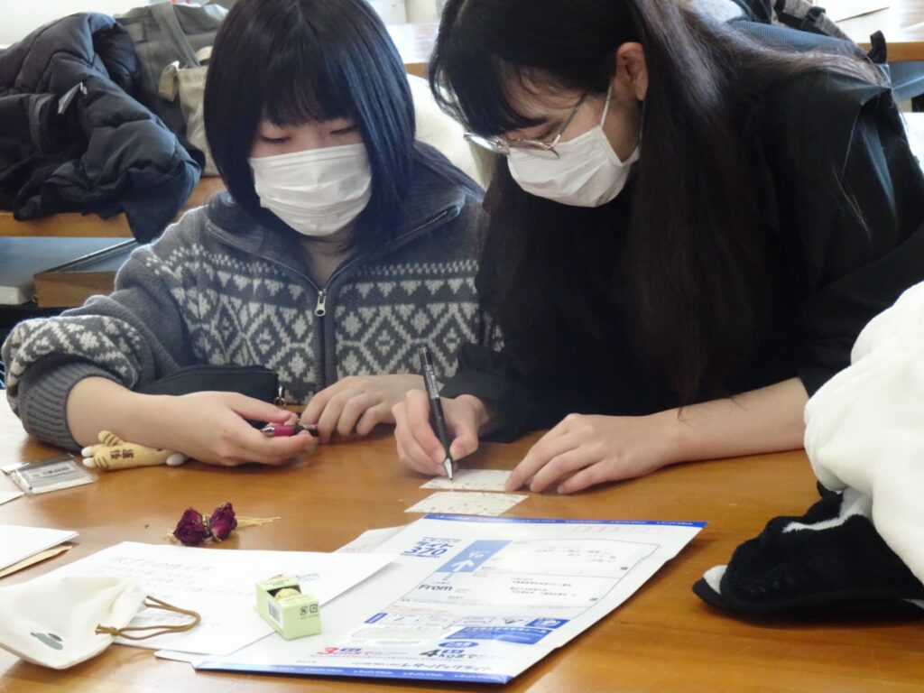介護福祉専攻の学生が音更町社会福祉協議会との連携事業で、地域の方とお便りを通じた『ワクワク☆お便り交流』を昨年12月~1月に実施しました。町の広報で募集し希望者は70名ほどになりました。それぞれの希望に沿って脳トレや塗り絵、クリスマスカードやポプリ作りの材料を送り、取り組んで頂きました。参加して頂いた方からは感謝のお手紙も届きました。2月6日(火)、音更町社会福祉協議会様より、学生に感謝のお言葉と素敵な記念品を頂きました。