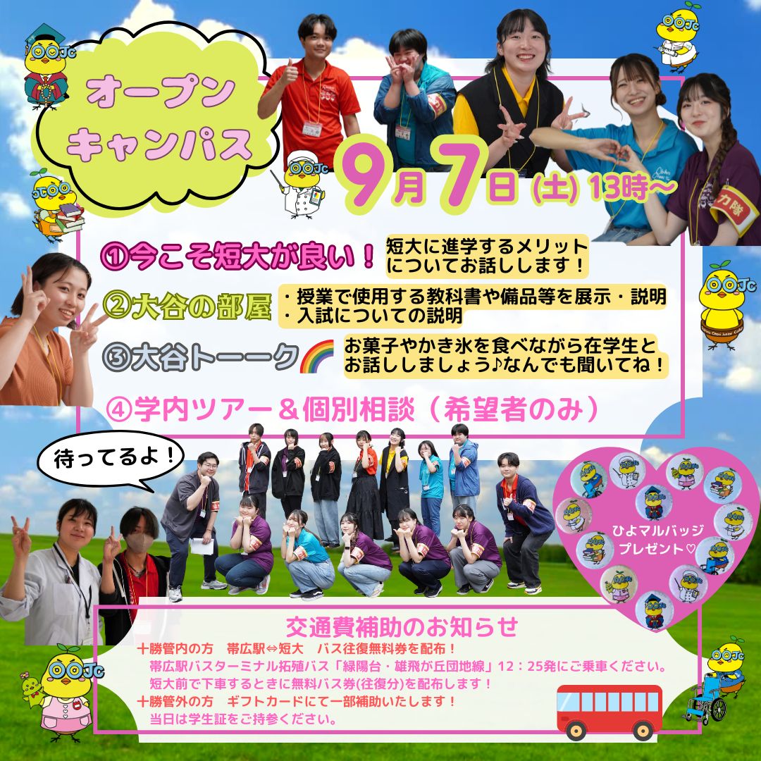 オープンキャンパス開催のお知らせ(9月7日土曜日)