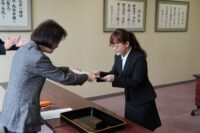 2024(令和6)年8月20日(火)、本学応接室にて「はまなす奨学金」の採用授与式が執り行われ、採用者に奨学生証が授与されました。