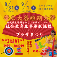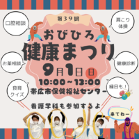 とかちプラザで行われる「プラザまつり」と、帯広市保健福祉センターで行われる「おびひろ健康まつり」に出展いたします。