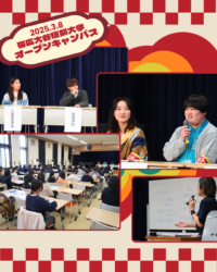 今回は学生トークショーと学科説明・体験授業を行いました。