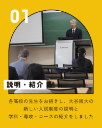 1部では、新しくなった帯広大谷短期大学の入試に関する説明、各学科・専攻・コースの紹介を行いました。