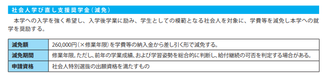 【本学独自の社会人向け奨学金】