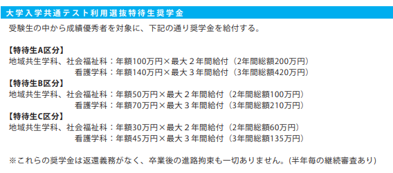 ※大学入学共通テスト利用選抜だけの特待生奨学金があります