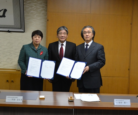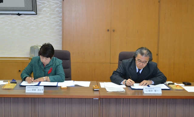 2014年12月15日(月)音更町役場におきまして、寺山音更町長立会いのもと、音更町社会福祉協議会と本学との介護福祉関係等の連携に関する協定の調印式が行われました。