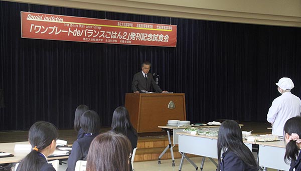 本学が連携協定を結ぶ、帯広大谷高等学校、音更高等学校、芽室高等学校の生徒および教諭の皆さんを招待し、「ワンプレートdeバランスごはん2」の発刊を記念した試食会を開催しました。
