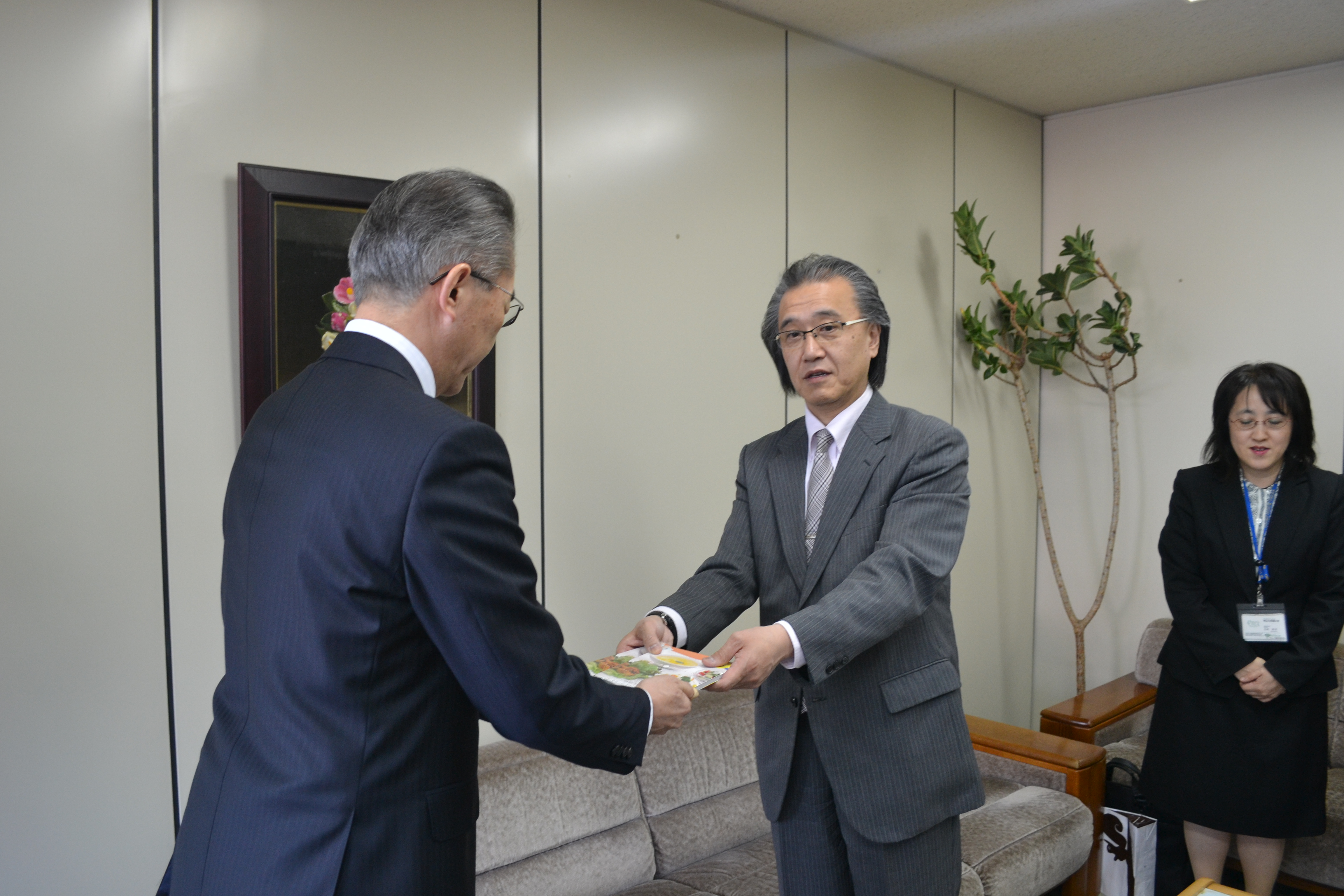 音更町の宮原達史教育長にご臨席いただき、田中学長から各校1冊ずつのレシピ本を手渡しました。