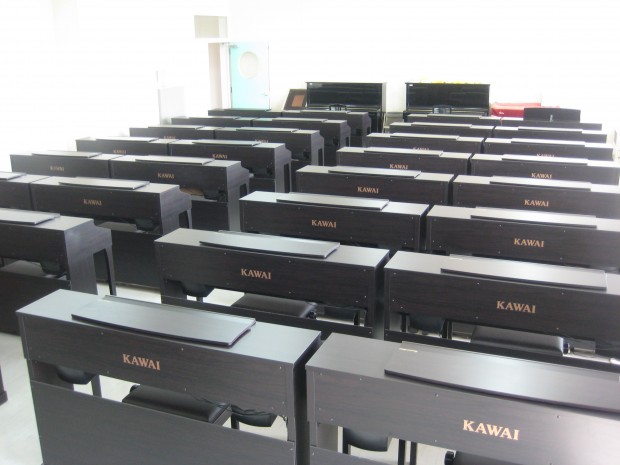 音楽・リズム室は、電子ピアノが全部で33台揃い、クラス単位でピアノ練習ができる教室です。