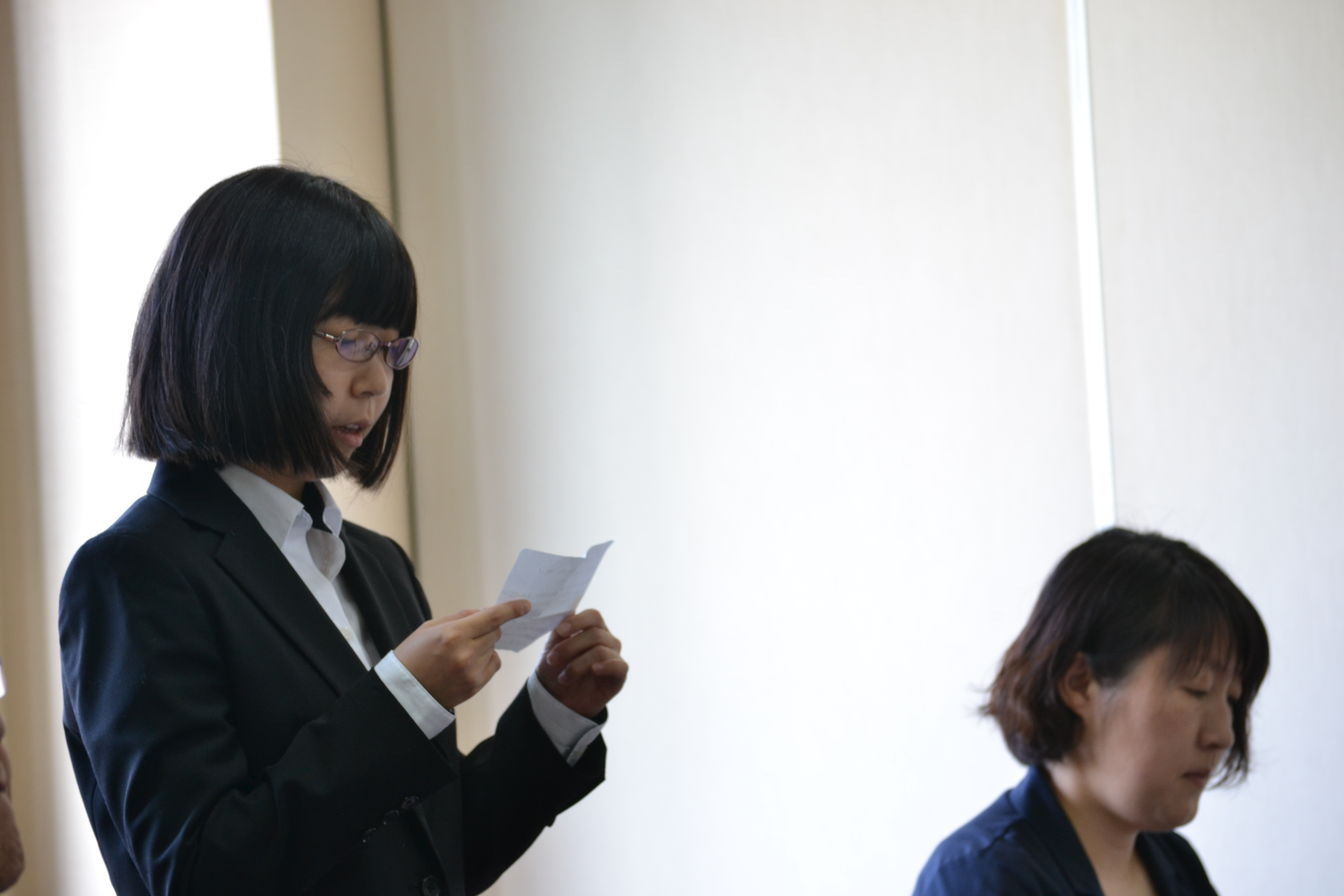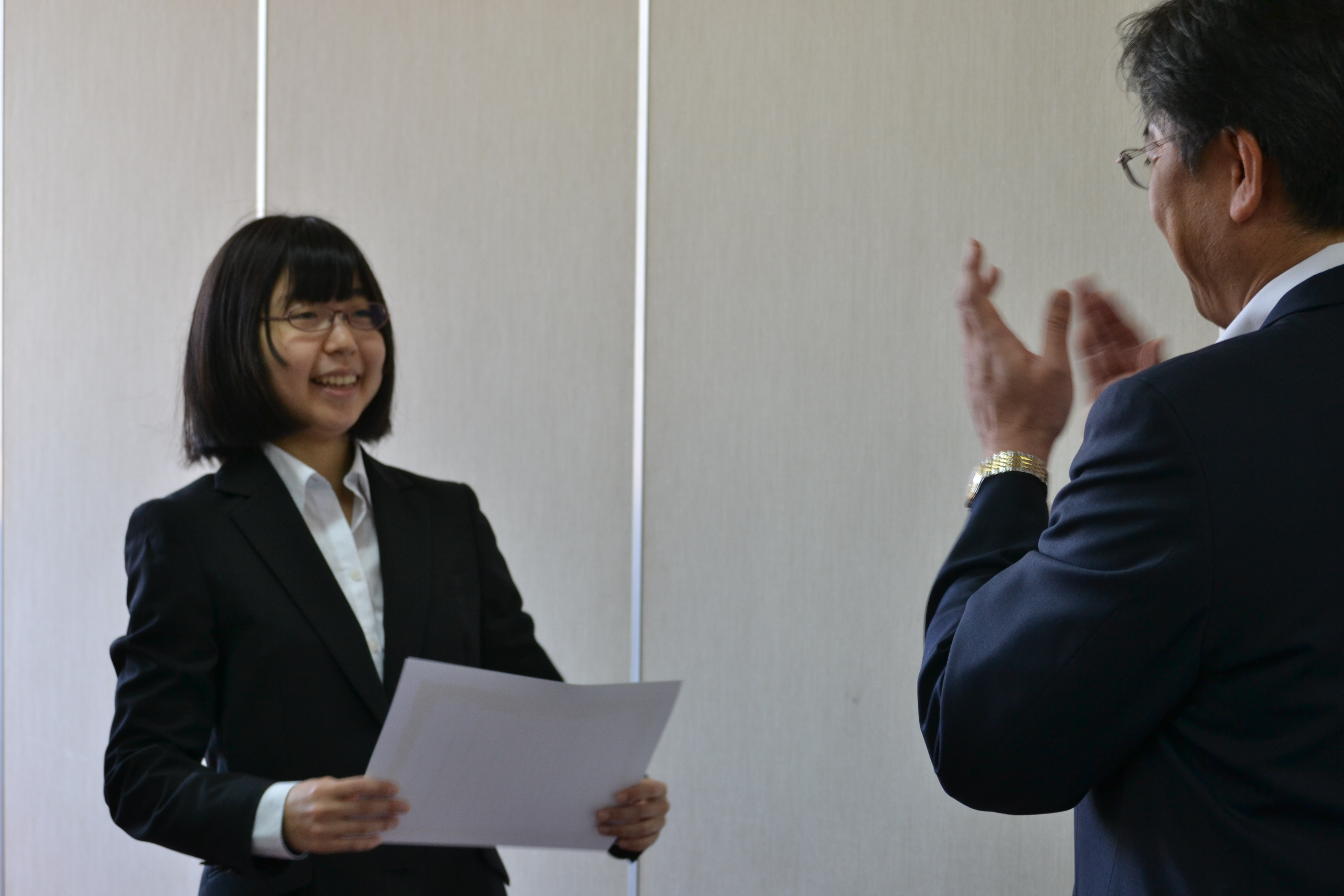 授与式では、生命保険協会の高橋会長より学生に採用通知書が手渡され、岡田、梅田両副会長より激励のお言葉をいだだきました。また、学生から資格所得へ向けた決意や将来の抱負が語られました。