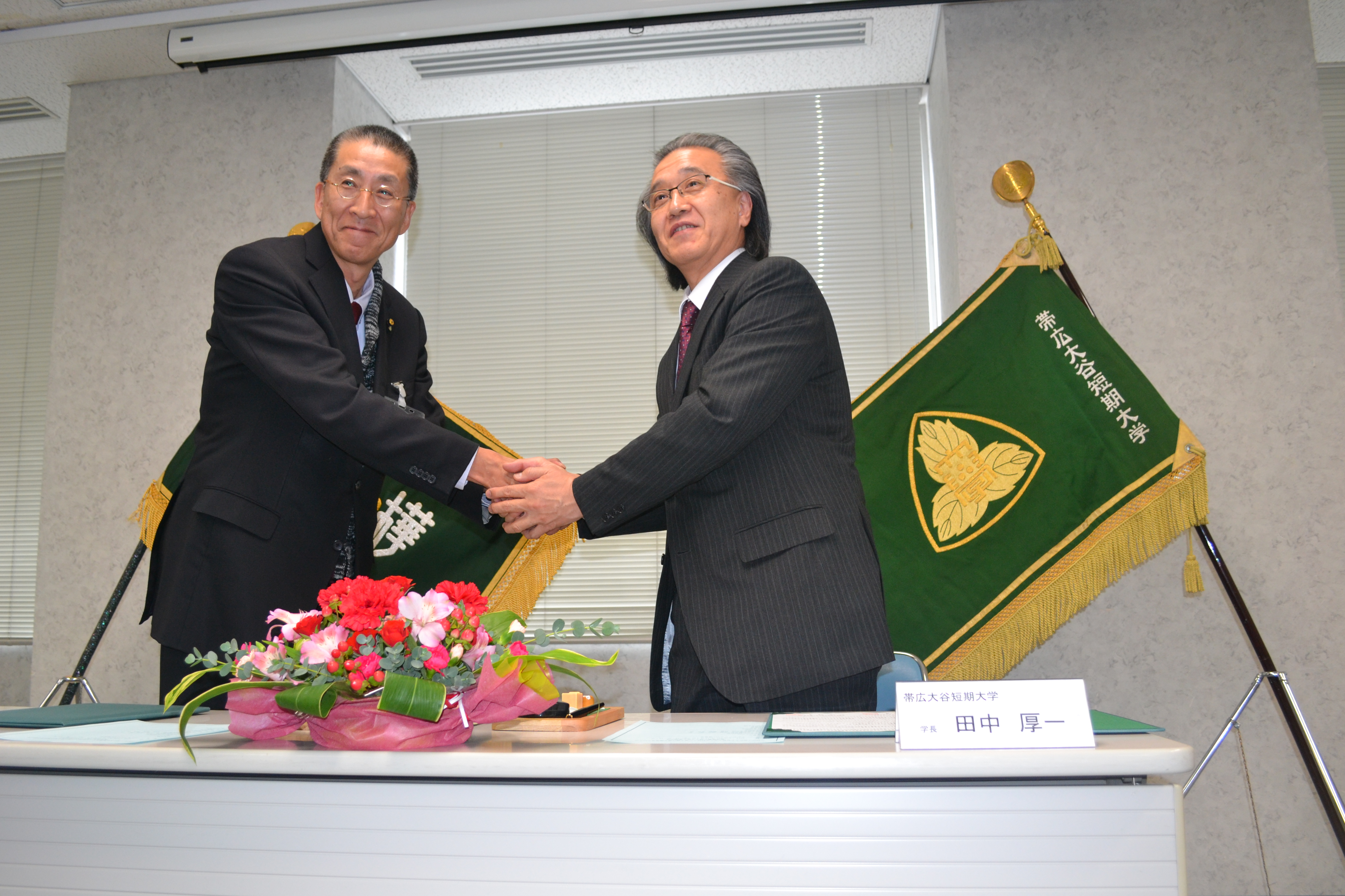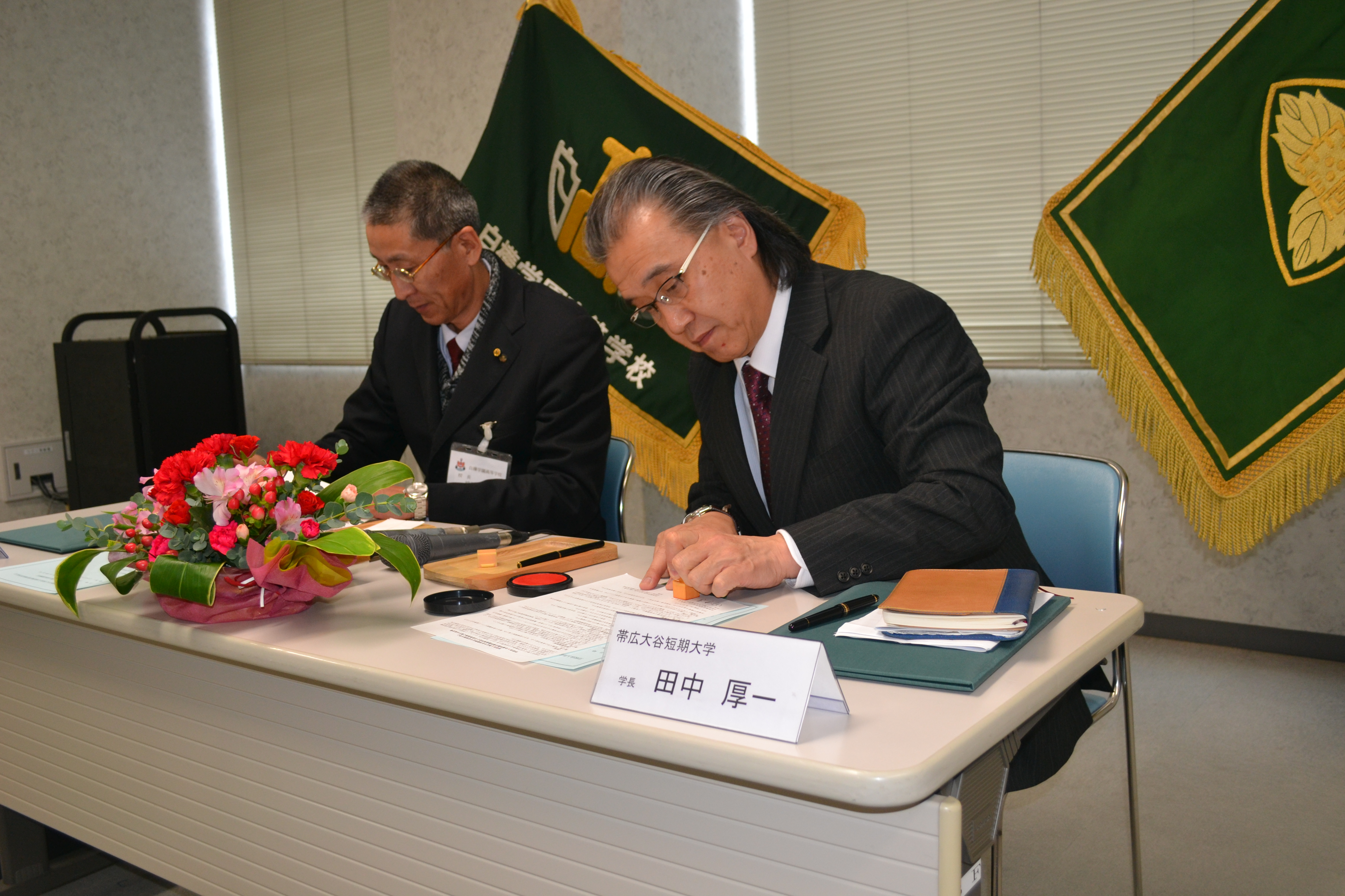 2016年12月9日(金)、とかちプラザにおきまして学校法人白樺学園白樺学園高等学校と本学との教育連携に関する協定の調印式が行われました。 この協定は、相互の教育活動の交流を通して連携・協力し、教育内容への理解を深めることにより、双方の教育目標達成を促進するとともに、十勝管内の将来を担う青少年の人材養成、地域社会への貢献、短期大学及び高等学校における教育の充実と学生及び生徒の資質の向上を図ることを目的として、学校法人白樺学園高等学校と本学が締結した教育連携です。