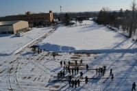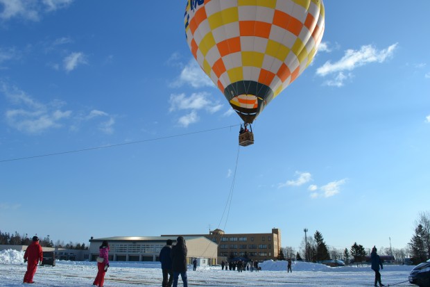 2017(平成29)年3月4日(土)、早朝、本学校舎南側グラウンドにて卒業記念「熱気球体験フライト」を実施しました。このイベントは、熱気球に乗り学校や周辺地域を上空から眺めることで、本学で過ごした2年間を振り返り、良き思い出に残してもらおうと企画しております。今年も上士幌高等学校熱気球部に全面的なご協力をいただき、昨年に引き続き3回目の開催を実現することができました。