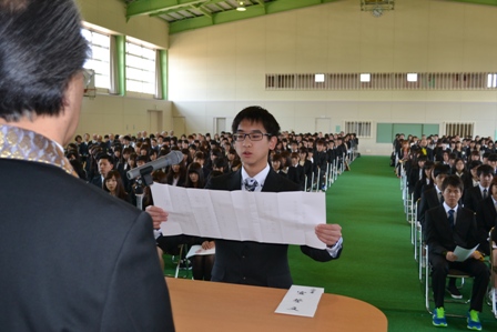 新入学生は緊張半分、期待半分の面持ちで式に臨んでいました。