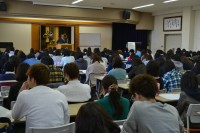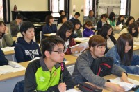 初日は本学講堂において全体研修が行われ、田中学長による講話がなされました。その後、学科・専攻に分かれ基礎的な学習をしました。最初は緊張した雰囲気も、研修が終わる頃になると、友人同士での会話も弾み、人間関係が構築できた有意義な研修となりました。