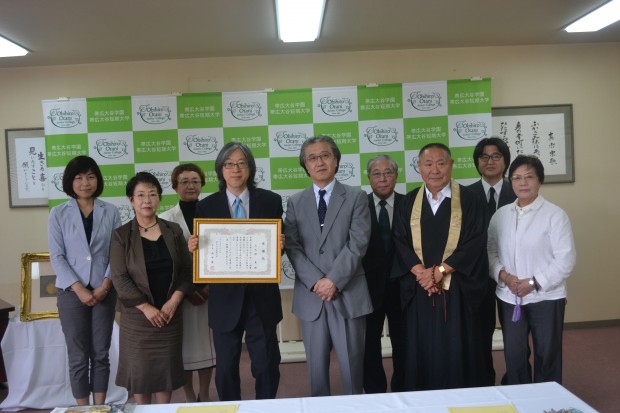 2017(平成29)年8月2日(水)、本学初代学長である西尾京雄氏の書や帯広ゆかりの画家能勢真美さんの絵画などの作品5点を寄贈していただいた大久保 真様に対し、感謝状を贈呈させていただきました。