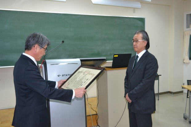 2017(平成29)年12月8日(金)、本学が長年取り組んできた、献血への貢献が認められ、「日本赤十字社創立140周年記念 社業功労者特別表彰」を受賞いたしました。 授賞式が本学で行われ、音更町保健福祉部古田部長より田中学長に対し 表彰状 が伝達されました。