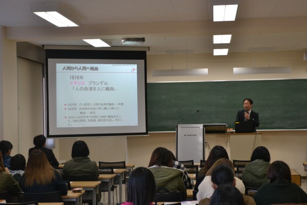 授賞式終了後には、北海道赤十字血液センターの職員の方々により、本学学生が献血の意義や必要性等を知ることを目的として、セミナーを開催していただきました。輸血を必要とする人たちが毎日どのくらい居て、献血した血液がどれほど役立っているか、改めて考える大切な機会となりました。