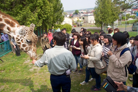 地域教養学科1年 入門ゼミナール 巡検 2014年5月24日(土) 地域教養学科1年は入門ゼミナールで帯広動物園と帯広百年記念館に巡検にいってきました。 帯広動物園では、副園長に動物園の使命や飼育の工夫等について伺いました。 帯広百年記念館では、大和田学芸員にとかちの歴史を解説していただきました。